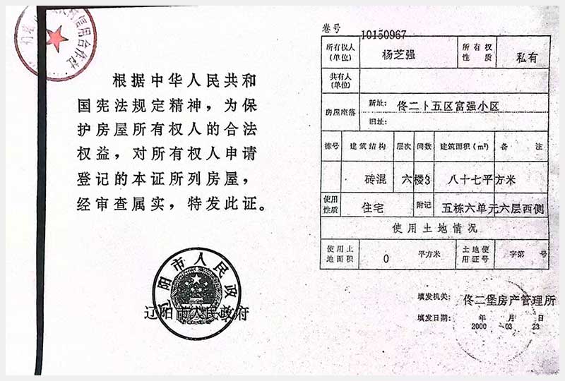 41號(hào) 燈塔市佟二堡鎮(zhèn)五區(qū)富強(qiáng)小區(qū)房產(chǎn)及土地使用權(quán)