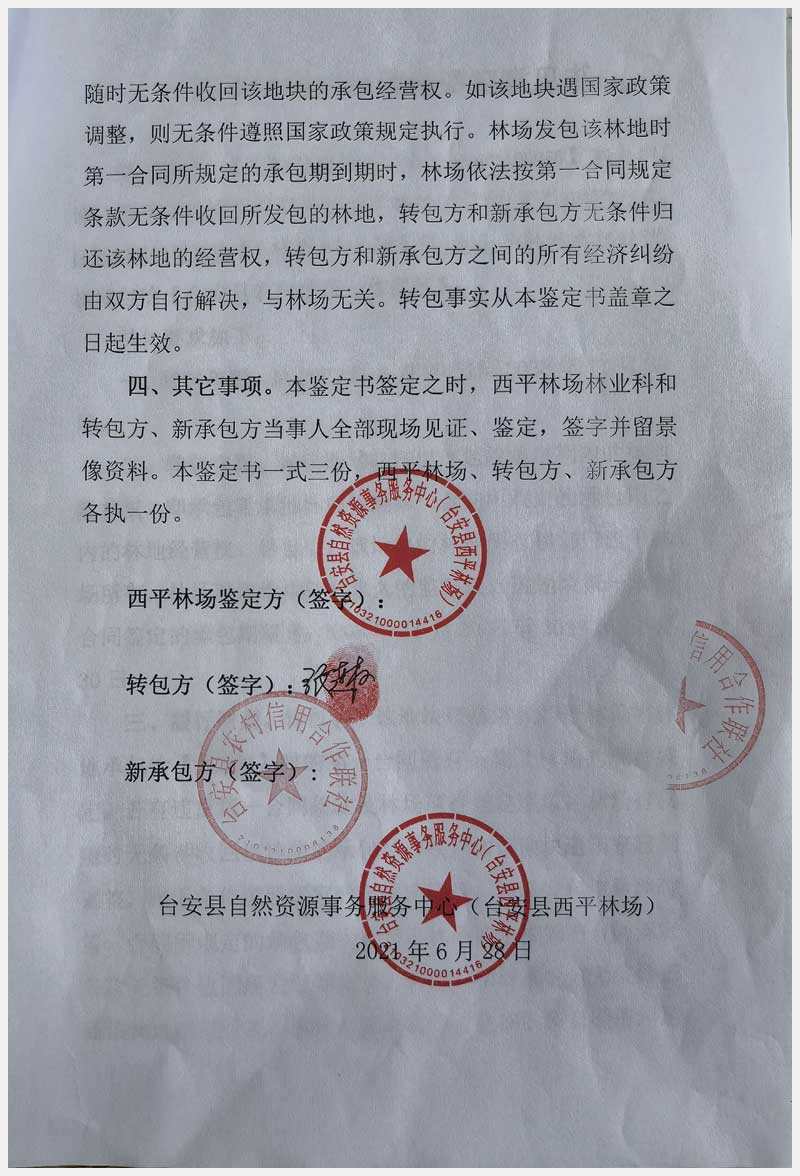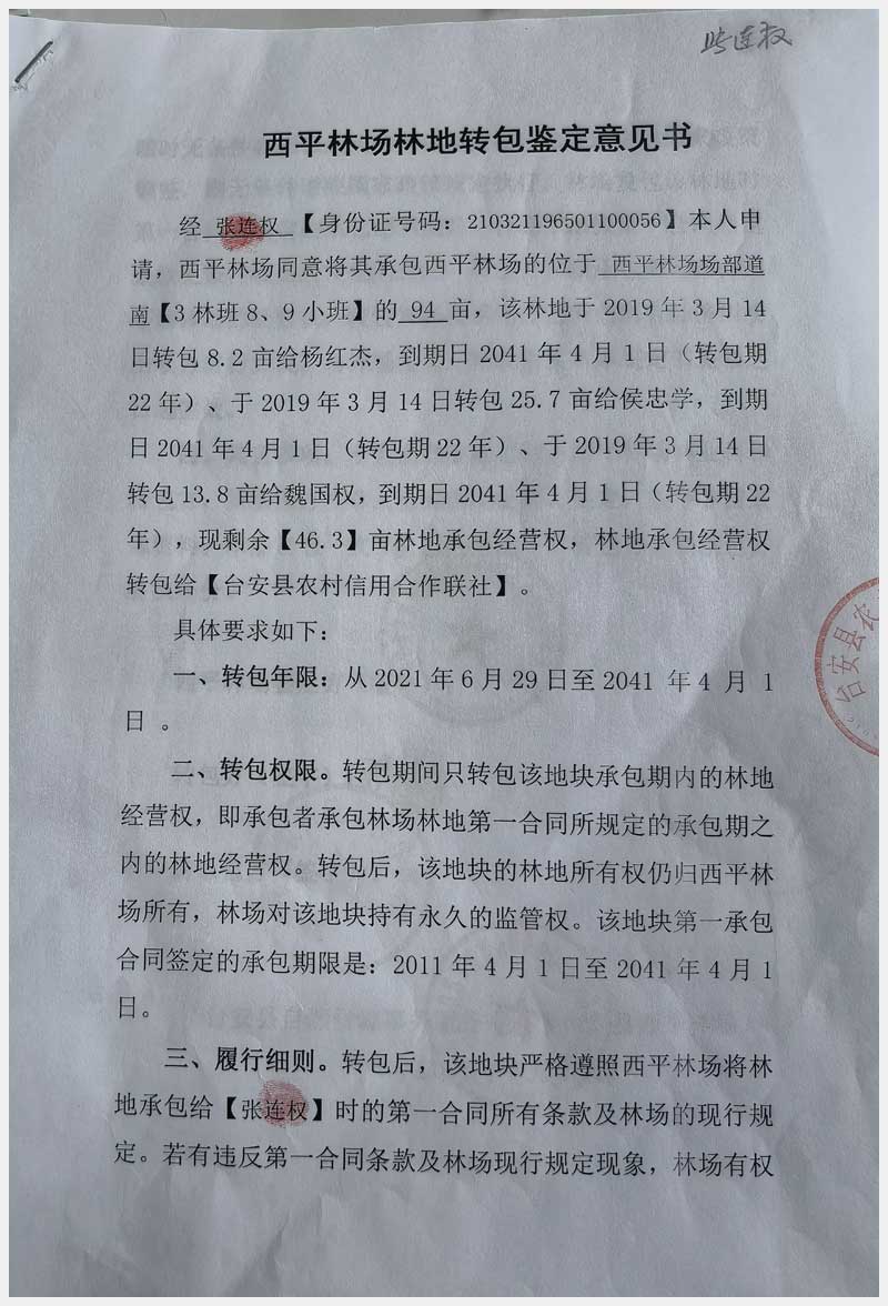 124號(hào) 臺(tái)安縣西平林場(chǎng)林地承包經(jīng)營(yíng)權(quán)及西平村土地承包經(jīng)營(yíng)權(quán)