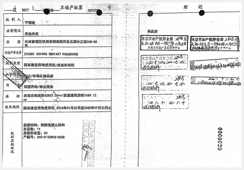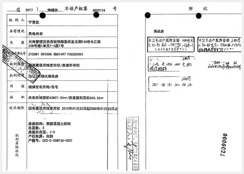 215-1號(hào) 海城市興海管理區(qū)鐵西街鋼南委祥圣五期13A棟長(zhǎng)江路228號(hào)樓1單元1-3層1號(hào)房產(chǎn)