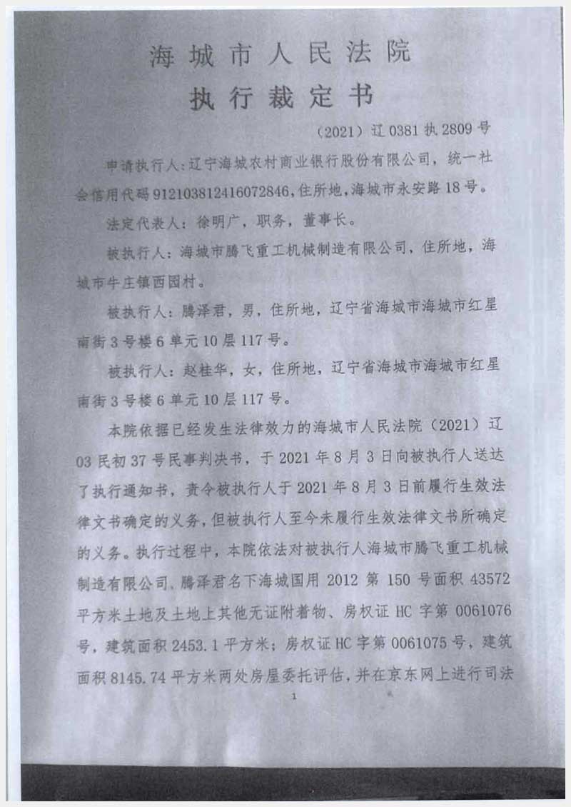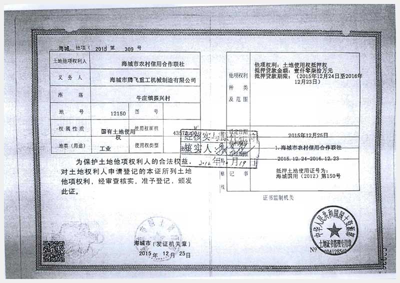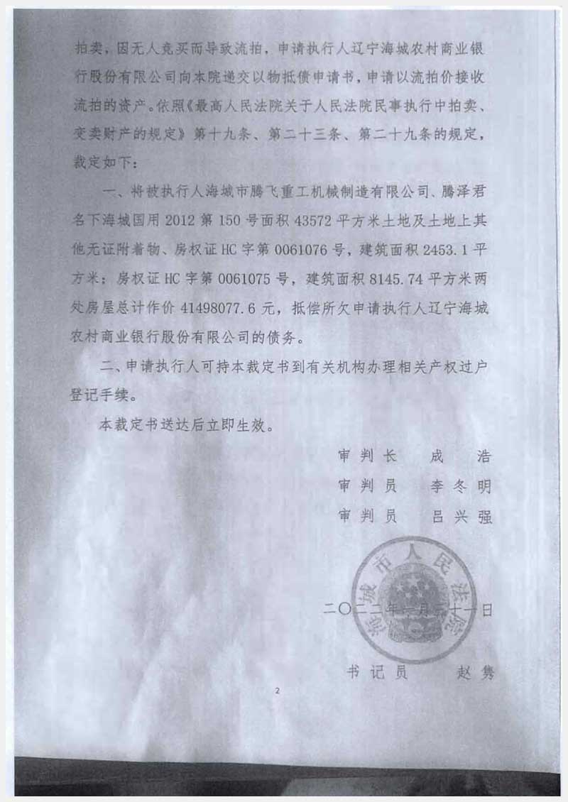 260號(hào) 海城市騰飛重工機(jī)械制造有限公司房產(chǎn)及土地使用權(quán)
