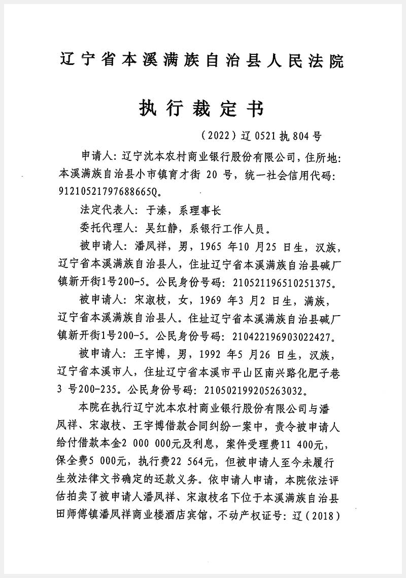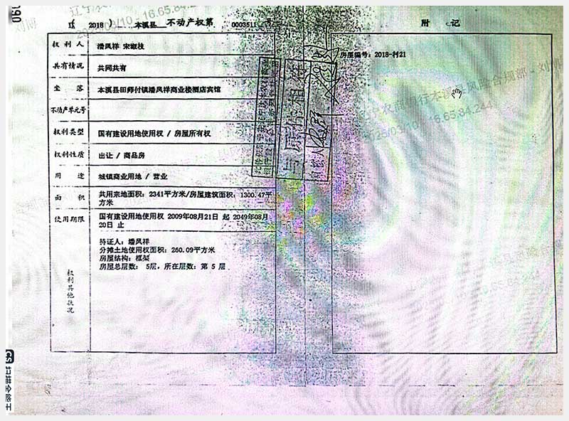 152號 本溪滿族自治縣田師付鎮(zhèn)潘鳳祥商業(yè)樓酒店賓館