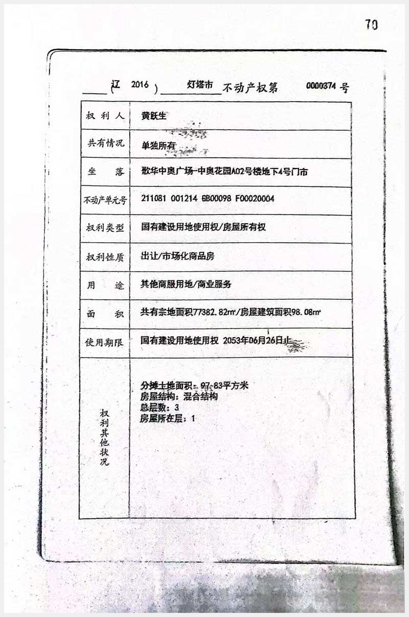 名稱:燈塔市歌華中奧廣場A02號樓4號、5號房產(chǎn) 面積:4號:270.83㎡;5號:269.51㎡ 瀏覽次數(shù):277