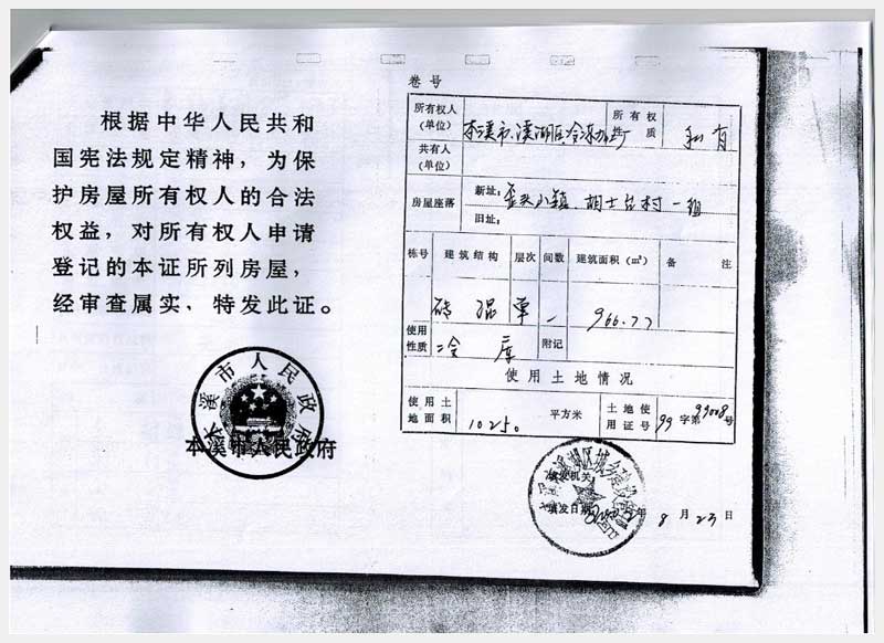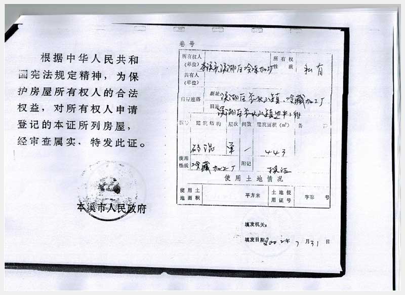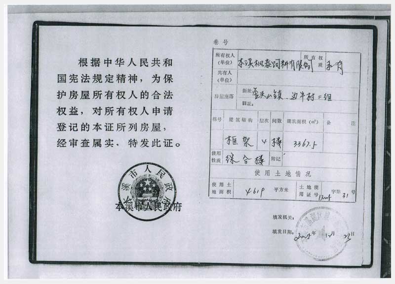 20號 本溪市溪湖區(qū)歪頭山鎮(zhèn)邊牛村房產(chǎn)、土地及機(jī)器設(shè)備