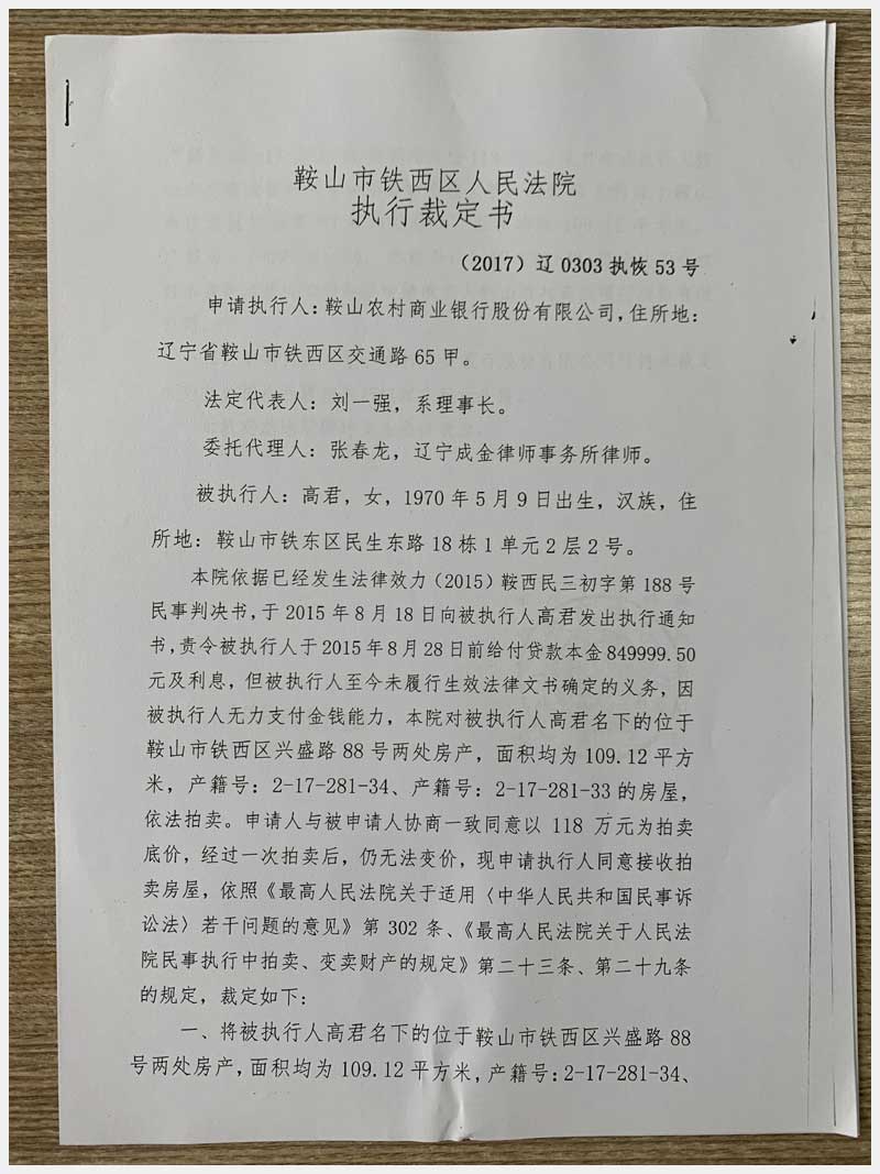 50號(hào) 鞍山市鐵西區(qū)興盛路88號(hào)2處房產(chǎn)