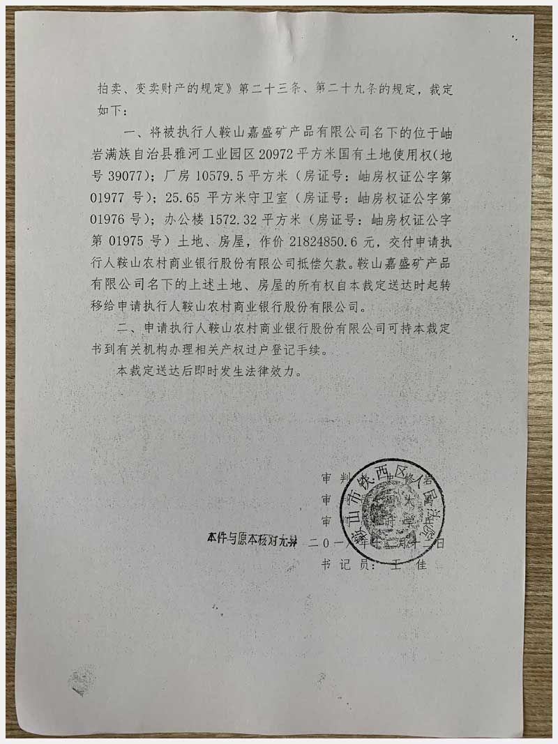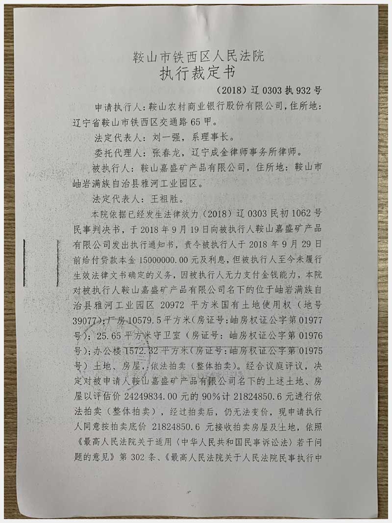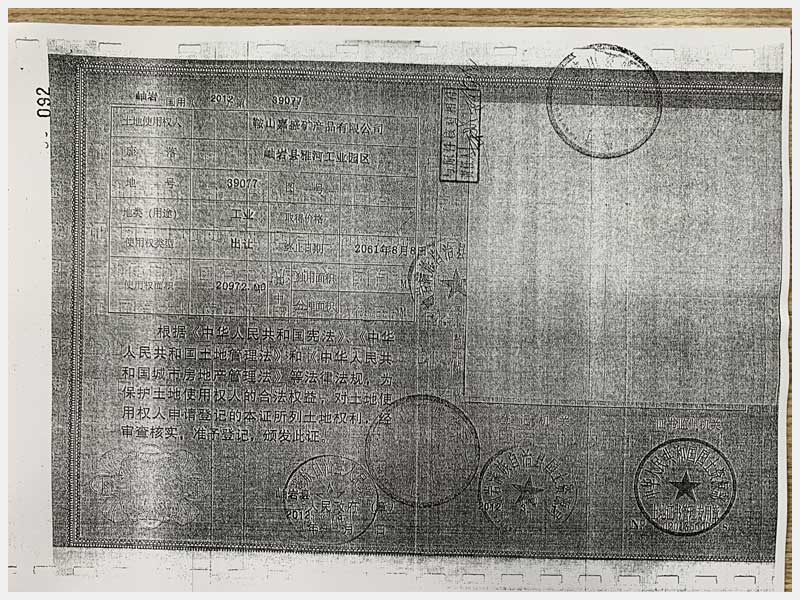 地址:鞍山市岫巖雅河工業(yè)園區(qū) 標(biāo)的號(hào):53