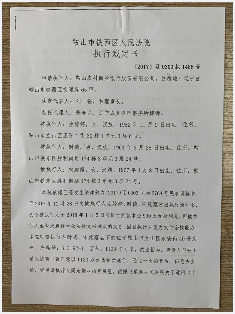 地址:鞍山市立山區(qū)永安街 標(biāo)的號:58