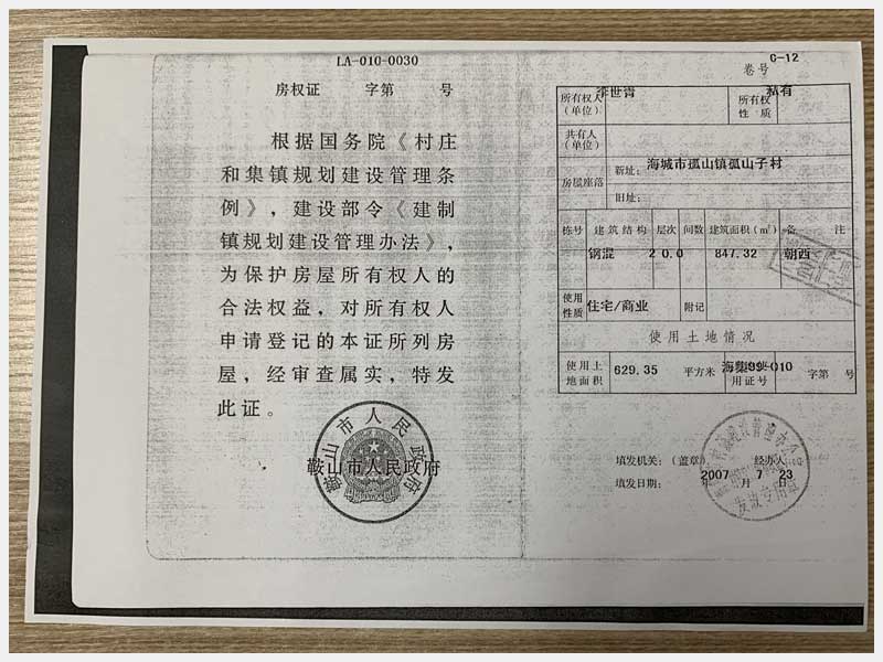 地址:海城市孤山鎮(zhèn)孤山村 標的號:2